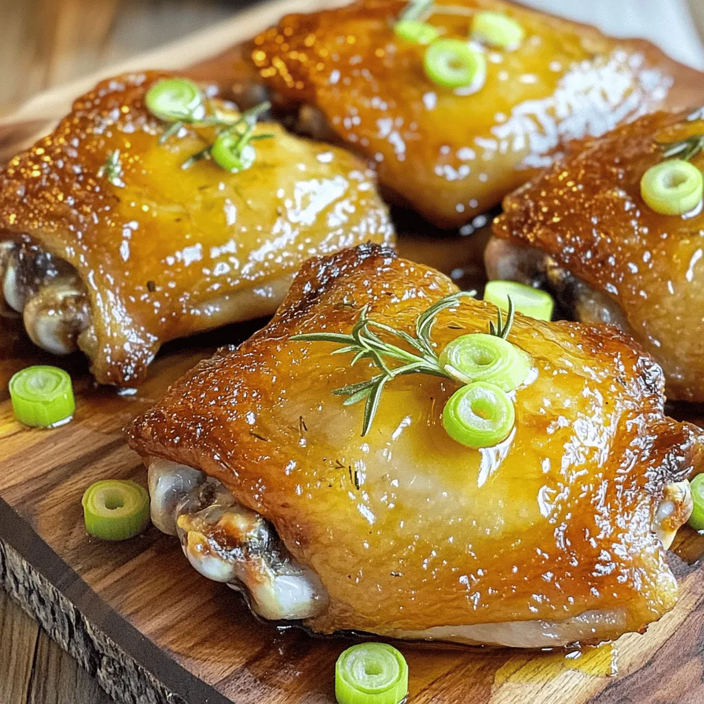 For plating, I arrange the chicken thighs on a serving platter. I drizzle the thickened glaze over the chicken. To finish, I garnish with sliced green onions. They add a nice pop of color and flavor. I love serving this dish with roasted vegetables or a fresh salad. It makes for a complete meal.