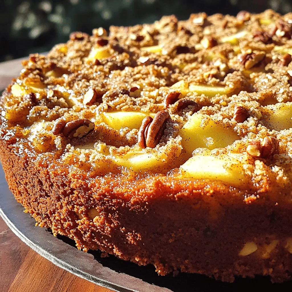 . Enjoy the process! - Make sure your butter is at room temperature. This helps it cream better. - Insert a toothpick into the center of the cake to check if it's done. If it comes out clean, your cake is ready! - If you want, you can use brown sugar instead of granulated sugar. This adds a nice flavor. - Try using different apples, like Fuji or Honeycrisp, for a sweeter taste. You can also swap pecans for walnuts or almonds if you prefer. - Serve the cake warm with a scoop of vanilla ice cream on top. It melts a bit and tastes amazing! - Pair your cake with coffee or tea. The warm spices in the cake go great with these drinks. For the complete recipe, check out the [Full Recipe]. {{image_2}} You can add more flavor to your Apple Pecan Cake by using spices. Try adding ginger or cloves for a warm kick. These spices pair well with apples and pecans. You can also mix in dried fruits like raisins or cranberries. This adds sweetness and texture to the cake. Each bite will surprise your taste buds! If you need a gluten-free option, you can use gluten-free flour. It works well in this recipe. For those who want a vegan cake, replace the eggs with applesauce. You can also use coconut oil instead of butter. These swaps keep the cake moist and tasty. Everyone can enjoy this delicious treat! You can change the size and shape of your cake. Bake it in different pan sizes for varied thickness. A round pan gives you a classic look. You can also make cupcakes or muffins. This makes serving easy for gatherings or lunchboxes. Plus, they bake faster than a full cake. Enjoy the fun of baking your way! To store your Apple Pecan Cake, let it cool first. Once cool, cover it with plastic wrap or foil. This keeps the cake moist and fresh. You can also place it in an airtight container. It will last in the fridge for about five days. If it’s hot outside, refrigerate it to avoid spoilage. If you want to keep the cake longer, freezing is a great option. Cut the cake into slices for easy serving. Wrap each slice in plastic wrap, then put them in a freezer bag. This keeps them fresh for up to three months. To enjoy, thaw the slices overnight in the fridge. Reheat them in the microwave for a few seconds, and they’ll taste fresh again. At room temperature, the cake lasts about two days. Make sure to keep it covered to protect it from air. Look for signs of spoilage, like mold or an off smell. If the cake feels dry or crumbly, it’s best to toss it. For the best flavor, eat it while it’s fresh. This is when the apples and pecans shine the most. For the full recipe, check the section above. To make the Apple Pecan Cake, follow these steps: 1. Preheat your oven to 350°F (175°C). Grease and flour a 9x13 inch baking pan. 2. In a large bowl, mix the dry ingredients: flour, sugar, baking powder, baking soda, salt, cinnamon, and nutmeg. 3. In another bowl, cream the softened butter until smooth. 4. Add the eggs, one at a time, and mix well. Then add the vanilla extract. 5. Slowly add the dry ingredients to the wet mixture until just combined. 6. Gently fold in the chopped apples and pecans. 7. Pour the batter into the prepared pan. Smooth it out with a spatula. 8. For the topping, mix brown sugar, oats, and cinnamon in a small bowl. Sprinkle it on top of the batter. 9. Bake for 35-40 minutes. Check with a toothpick; it should come out clean. 10. Cool the cake in the pan for about 10 minutes, then move it to a wire rack. This process makes a delightful cake you can enjoy with friends and family. For the full recipe, check out the recipe section above. Yes, you can use other nuts in this recipe. Here are some great options: - Walnuts: They add a rich taste and crunch. - Almonds: Sliced almonds give a nice texture. - Hazelnuts: These offer a unique flavor twist. - Cashews: They add creaminess and a soft crunch. Feel free to experiment with your favorite nuts. Just chop them up and add them like pecans. If your cake turns out dry, don't worry. Here are some tips to fix it: - Check your oven temperature. An oven that is too hot can dry out cakes. - Use fresh apples, as they add moisture. Granny Smith works well here. - Add a bit of applesauce to the batter next time. It keeps the cake moist. - Cover the cake with foil while baking if it browns too fast. These steps can help you achieve a moist and tasty cake every time. In this post, we covered the ingredients for a delicious apple pecan cake. We explored both dry and wet components, plus tasty toppings. I shared clear steps to mix and bake your cake perfectly. I offered tips and variations to make this cake your own. Baking can be fun and rewarding. With this recipe, you can impress friends and family. Enjoy your time in the kitchen and savor every bite of your cake!](https://stirredrecipes.com/wp-content/uploads/2025/08/cb984b07-47ae-4539-b062-84bc17fdb734-300x300.webp)
