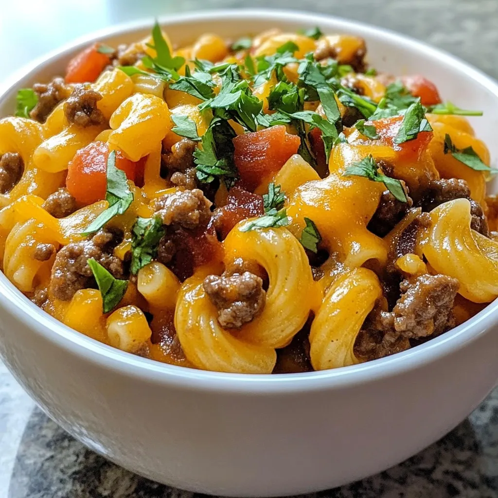 You can swap out ingredients to fit your taste. Instead of ground beef, try ground turkey or chicken. Both options give a lighter flavor. If you want a richer taste, use chorizo. For the cheese, feel free to use Monterey Jack or pepper jack. They melt beautifully and add a nice kick. You can also replace elbow macaroni with penne or rotini. Each pasta shape offers a fun twist to the dish.