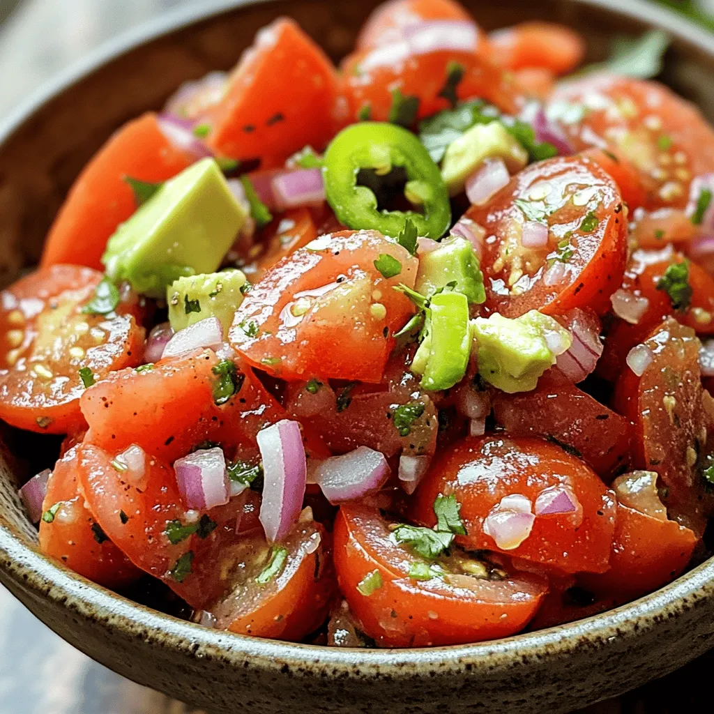 These ingredients bring bright flavors to your table. Fresh tomatoes provide sweetness. The red onion adds a nice crunch and a bit of bite. Jalapeños bring heat, but you can control this by removing the seeds. Cilantro gives a fresh, herbal note. Garlic adds depth, while lime juice brightens it all up. Cumin rounds out the flavor with a warm, earthy taste. If you love creaminess, add avocado for a delightful twist.