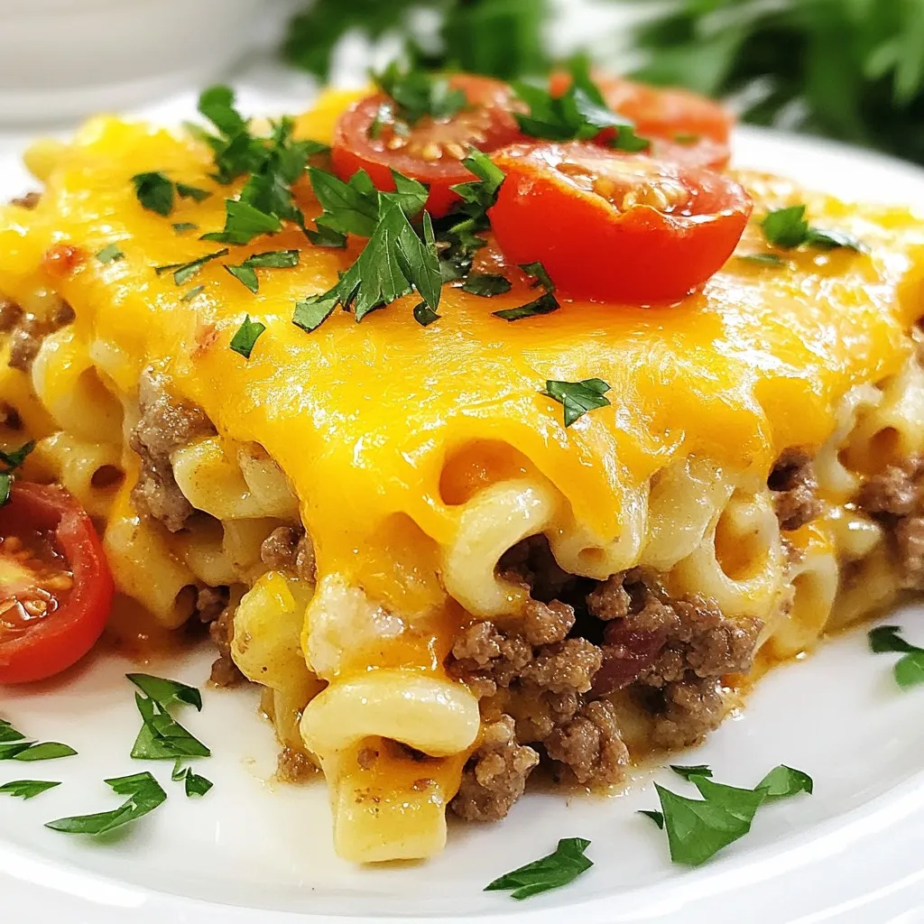 A hearty and comforting casserole that combines the flavors of a cheeseburger with pasta.