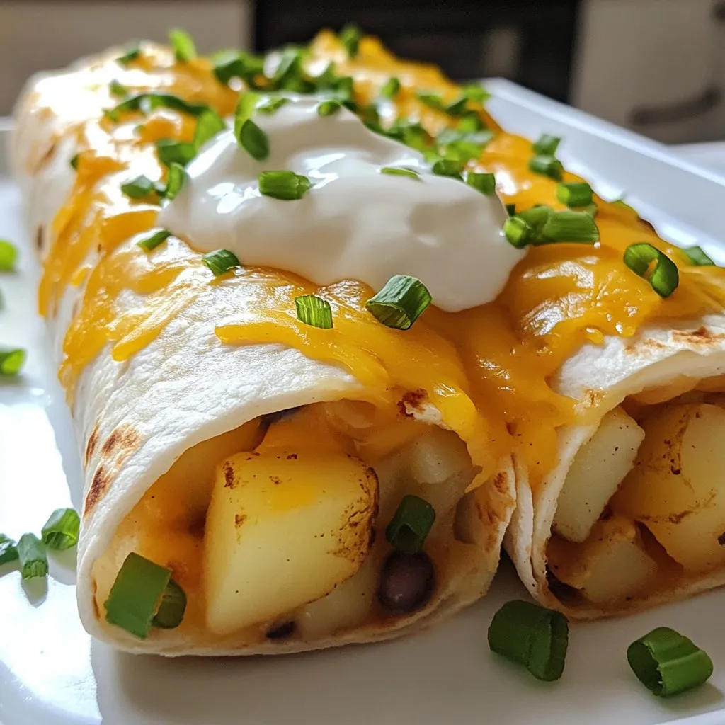Delicious burritos filled with cheesy potatoes and black beans, perfect for a quick meal.