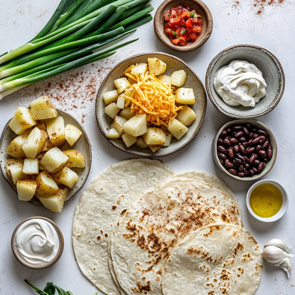 To make tasty Cheesy Potato Burritos, you need a few key ingredients. The flour tortillas are essential for wrapping up the filling. Use potatoes for a soft and creamy base. Choose your favorite cheese like cheddar or a Mexican blend for that gooey goodness. Spice it up with garlic powder, smoked paprika, and cumin. Don’t forget salt and pepper to enhance all the flavors.