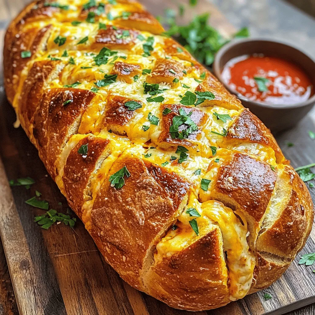 To get that gooey cheese you crave, use fresh cheese. Shredded mozzarella and cheddar work best. Mixing these two gives you a great blend of flavors. Make sure to fill every gap in the bread with cheese. This way, every piece is cheesy and fun to pull apart. Bake until the cheese is bubbling and golden. This usually takes about 25-30 minutes total.