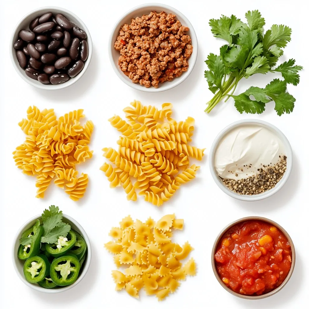 These ingredients create the perfect balance of flavors. You can choose your pasta type based on what you like best. Penne offers a fun bite, while rotini holds sauce well. Ground beef gives a rich taste, but ground turkey is lighter.
