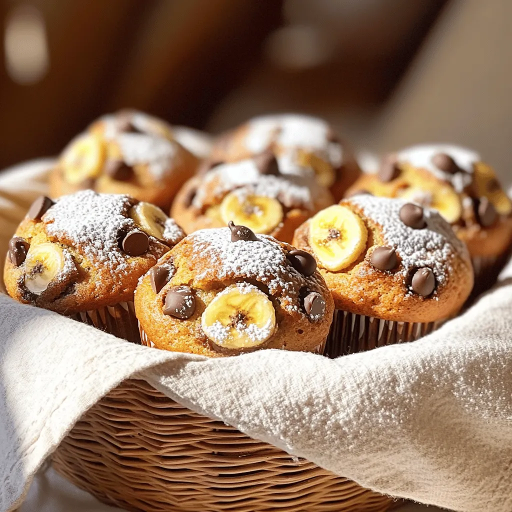 To make Chocolate Chip Banana Bread Muffins, you need these simple items: - 2 ripe bananas, mashed - 1/2 cup granulated sugar - 1/4 cup brown sugar, packed - 1/3 cup vegetable oil - 1 large egg - 1 teaspoon vanilla extract - 1 cup all-purpose flour - 1/2 teaspoon baking soda - 1/2 teaspoon baking powder - 1/4 teaspoon salt - 1/2 cup chocolate chips - 1/4 cup chopped walnuts (optional) If you don’t have some items, don’t worry! Here are some easy swaps: - Instead of granulated sugar, use coconut sugar or honey. - You can swap vegetable oil with melted butter or applesauce. - If you want a healthier option, use whole wheat flour instead of all-purpose flour. - For a nut-free option, skip the walnuts or use seeds instead. Ripe bananas are key for this recipe. They add natural sweetness and moisture. The darker the banana, the better! Overripe bananas mash easily and give a richer flavor. They also help the muffins rise well. Using ripe bananas ensures your muffins are soft and delicious. You’ll taste the difference! Start by setting your oven to 350°F (175°C). This step is key for baking. Next, take a muffin tin and line it with paper liners. You can also use non-stick spray for easy removal. Make sure this is done before mixing. It saves time later. In a large bowl, mash two ripe bananas. I love using ripe bananas for their sweetness. Then, add 1/2 cup of granulated sugar and 1/4 cup of brown sugar. Next, pour in 1/3 cup of vegetable oil and crack in one large egg. Add one teaspoon of vanilla extract for a nice flavor boost. Mix everything well until it’s smooth and creamy. In another bowl, whisk together 1 cup of all-purpose flour, 1/2 teaspoon of baking soda, 1/2 teaspoon of baking powder, and 1/4 teaspoon of salt. This mix helps the muffins rise. Make sure there are no lumps in the dry mix. It can really change the texture of your muffins. Now, gently add the dry ingredients to the wet mixture. Stir until just combined. Do not over-mix! A few lumps are perfectly fine. Once combined, it’s time to fold in 1/2 cup of chocolate chips. If you like, add 1/4 cup of chopped walnuts too. This adds a nice crunch. Spoon the batter into your prepared muffin tin. Fill each cup about 3/4 full. This gives the muffins room to rise. Bake them in the preheated oven for 18-20 minutes. To check if they're done, insert a toothpick into the center. If it comes out clean, they are ready! Let the muffins cool in the tin for about 5 minutes, then transfer them to a wire rack. Enjoy your delicious creation! To make your muffins moist, start with ripe bananas. Overripe bananas are sweet and add moisture. Use two medium-sized ripe bananas. Mash them well before mixing. The oil also helps keep the muffins soft. Use 1/3 cup of vegetable oil in your batter. This adds fat and keeps the texture light. Lastly, watch your baking time. Overbaking makes muffins dry. Bake them just until a toothpick comes out clean. Mixing the batter too much can ruin the muffins. When you add dry ingredients, stir gently. You want to mix until the flour disappears. It’s okay to have some lumps. This keeps the muffins fluffy. After adding chocolate chips, fold them in softly. This way, you don’t activate the gluten too much. Remember, less mixing leads to better muffins! To keep your muffins fresh, store them in an airtight container. Let them cool completely before putting them away. If you want to keep them longer, freeze the muffins. Place them in a freezer bag. They can last up to three months. When ready to eat, thaw them overnight in the fridge. For a warm treat, pop them in the microwave for 15-20 seconds. Enjoy your delicious muffins fresh! {{image_2}} You can make these muffins even more fun. Adding nut butter gives them a creamy texture. Peanut butter or almond butter works well. Just mix in 1/4 cup of your favorite nut butter with the wet ingredients. You can also add other mix-ins, like dried fruit or seeds. Try 1/4 cup of raisins or pumpkin seeds for great flavor. If you like it sweeter, add more sugar. Try using 3/4 cup of granulated sugar. If you prefer less sweetness, reduce the sugar to 1/4 cup. You can also use honey or maple syrup instead. These natural sweeteners add a unique taste. Just remember to adjust the liquid in the recipe to keep the batter right. You can make these muffins gluten-free easily. Substitute all-purpose flour with a gluten-free blend. Look for blends that have xanthan gum for the best results. You can also use almond flour or oat flour. Just keep in mind that it may change the texture a bit. Always check that your mix-ins are gluten-free too! To keep your chocolate chip banana bread muffins fresh, store them in an airtight container. This will help maintain their moisture and flavor. You can keep them at room temperature for up to three days. If you want them to last longer, refrigerate them. Just remember, refrigeration may dry them out a bit. If you want to save some muffins for later, freezing is a great choice. First, let the muffins cool completely. Then, wrap each muffin tightly in plastic wrap. Place them in a freezer-safe bag or container. Label the bag with the date. They will stay good for about three months. When you crave a muffin, just pull one out and let it thaw. To enjoy your muffins again, reheating is simple. You can use a microwave or an oven. For the microwave, heat one muffin for about 15-20 seconds. If you prefer the oven, preheat it to 350°F (175°C). Place the muffin on a baking sheet and warm it for about 5-10 minutes. Both methods will make your muffins tasty and warm again. Yes, you can use frozen bananas. Just thaw them first. Drain any extra liquid. Mash them well before adding them to the mix. Frozen bananas can add great flavor and moisture to the muffins. You can make these muffins healthier by swapping some ingredients. Use whole wheat flour instead of all-purpose flour. You can also cut down the sugar by using less granulated and brown sugar. Adding