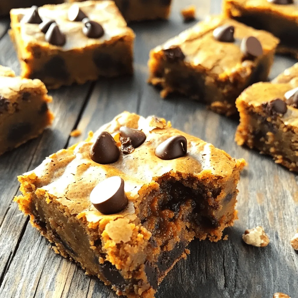 To keep your chocolate chip pumpkin blondies fresh, store them in an airtight container. This method helps maintain their soft texture. Place a piece of parchment paper between layers to prevent sticking. You can keep them at room temperature for up to three days. If you want them to last longer, refrigerate them for up to a week.