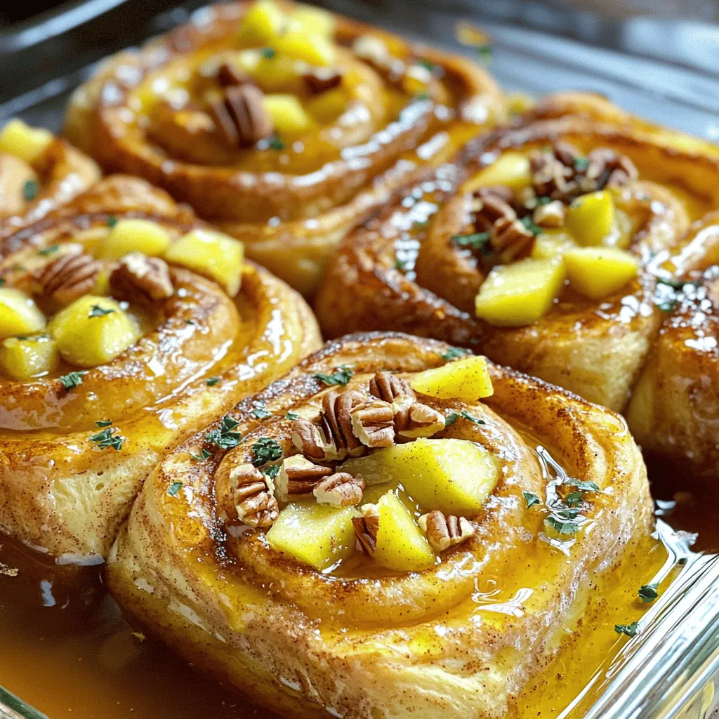 To make this tasty Cinnamon Roll Apple French Toast Bake, you will need the following ingredients: - 1 can (16 oz) refrigerated cinnamon rolls, cut into quarters - 2 cups apples, peeled and diced - 4 large eggs - 1 cup milk - 1 teaspoon vanilla extract - 1 teaspoon ground cinnamon - 1/4 teaspoon nutmeg - 1/4 cup brown sugar I love using Granny Smith or Honeycrisp apples for this bake. These apples add a nice tartness that balances the sweet rolls. Granny Smith apples keep their shape well when baked. Honeycrisp apples bring a lovely sweetness and crunch. You can mix both for extra flavor! You can make this dish your own by adding some optional ingredients: - 1/4 cup chopped pecans for a crunchy texture - 1/4 cup maple syrup for drizzling on top These add-ons elevate the dish and give it a personal touch. Enjoy experimenting with different flavors! First, I preheat my oven to 350°F (175°C). This step is key for even baking. Next, I grab a 9x13 inch baking dish and grease it well. This helps the food not stick. I make sure to coat the bottom and sides. In a medium bowl, I cut the apples into small pieces. I like using Granny Smith or Honeycrisp. These apples add a nice tartness. I add brown sugar and ground cinnamon to the apples. I toss them until they are well coated. In a larger bowl, I crack four eggs and whisk them. I pour in a cup of milk and add vanilla extract, nutmeg, and a pinch of salt. I mix this until it looks smooth. Now, I spread the quartered cinnamon rolls in the baking dish. I make sure they are even. Then, I pour the egg mix over the cinnamon rolls. I want each piece to soak up the goodness. I layer the coated apples on top of the cinnamon rolls. If I want extra crunch, I sprinkle chopped pecans over the apples. Now, I place the dish in the preheated oven. I bake it for 30 to 35 minutes. I check if it's done by inserting a toothpick. If it comes out clean, it's ready! After baking, I let it cool for about 10 minutes. Finally, I drizzle warm maple syrup over the top. This makes it extra tasty! To soak the cinnamon rolls well, start with the egg mixture. Whisk the eggs, milk, vanilla, nutmeg, and a pinch of salt together. Make sure it’s mixed well. When you pour it over the cinnamon rolls, do it slowly. This helps each piece get soaked. Let the rolls sit for a few minutes before baking. This extra time allows them to absorb even more flavor. I love using Granny Smith or Honeycrisp apples. Granny Smith gives a tart bite, which balances the sweet rolls. Honeycrisp is sweet and juicy, adding great flavor. Both types hold their shape well during baking. Always peel and dice your apples to ensure they cook evenly. This step makes them soft and tasty in every bite. To get a golden top, watch your baking time closely. Bake at 350°F for 30-35 minutes. If you want a crispier finish, broil for a minute or two at the end. Just keep an eye on it to avoid burning. You can also sprinkle a bit of brown sugar on top before baking. This adds a sweet crunch that looks and tastes amazing. {{image_2}} You can make this dish dairy-free easily. Use almond milk or oat milk instead of regular milk. Both options work great and keep the dish creamy. You can also use a dairy-free yogurt for an extra rich flavor. Just make sure it is plain to not change the taste. Adding spices and fruits can give your baked dish new life. You might try adding ginger or cardamom for a warm twist. You can also toss in raisins or cranberries for some fruity goodness. If you love nuts, try walnuts or almonds instead of pecans. They add a nice crunch and flavor. To make this dish gluten-free, use gluten-free cinnamon rolls. Many brands offer tasty options that work well. Check the labels to ensure they meet your needs. You can also use gluten-free bread, like a nice gluten-free brioche, for a different texture. This way, everyone can enjoy this yummy treat. To store your Cinnamon Roll Apple French Toast Bake, let it cool first. Once cooled, cover it tightly with plastic wrap or aluminum foil. You can also transfer it to an airtight container. This keeps the dish fresh for up to three days in the fridge. Make sure to place it on a flat surface to prevent spills. When it’s time to enjoy leftovers, preheat your oven to 350°F (175°C). Place the bake in an oven-safe dish and cover it with foil. Heat for about 15-20 minutes, or until warmed through. You can also microwave individual portions for about 30-60 seconds. Just be careful, as it can get hot quickly. If you want to freeze this dish, let it cool completely first. Cut it into portions for easy thawing later. Wrap each piece tightly in plastic wrap and then in foil. Place them in a freezer bag, removing as much air as possible. You can freeze it for up to three months. To reheat, thaw in the fridge overnight and follow the reheating instructions above. Yes, you can make this dish ahead of time. Prepare it the night before. Just cover it and store it in the fridge. When you are ready to bake, take it out. Let it sit at room temperature for 15 minutes. This helps it bake evenly. You can use other types of bread. Consider using brioche or challah. They both soak up the egg mixture well. You can also try using croissants for a flakier texture. Just cut them into small pieces like you would with cinnamon rolls. Check for a golden brown top. Insert a toothpick into the center. If it comes out clean, it’s done. The edges should be firm, and the middle should not jiggle. Let it cool for about 10 minutes before serving. Yes, you can make this dish without eggs. Use a flaxseed meal or chia seed mixture as a binder. Mix 1 tablespoon of flaxseed meal with 2.5 tablespoons of water for each egg. Let it sit for a few minutes until it thickens. This works well to bind the other ingredients together. This blog post covered all you need to know about baking delicious cinnamon rolls. We explored key ingredients, from the best apples to optional add-ons. You learned step-by-step 