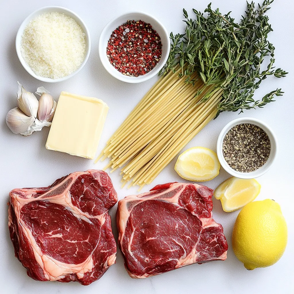 A delicious pasta dish featuring ribeye steaks and a flavorful cowboy butter sauce.