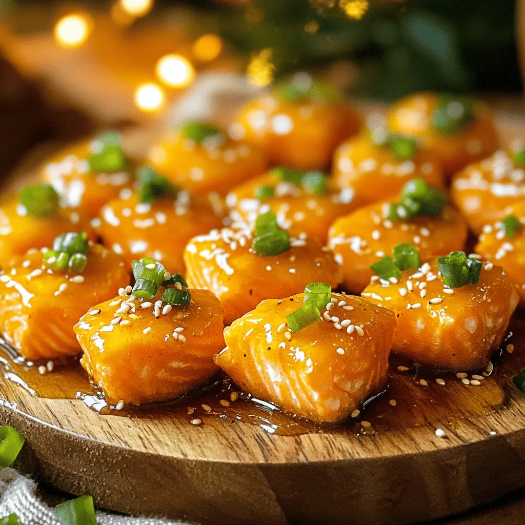 For side dishes, consider steamed broccoli or jasmine rice. Both pair well and add color to your meal. You can also serve a fresh salad for a light touch. These sides complement the sweet and savory notes of the salmon bites.