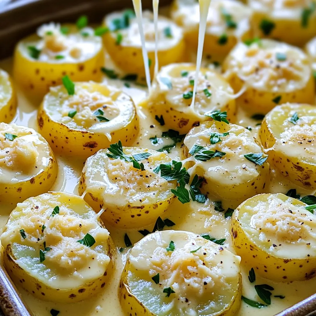 - 2 pounds baby potatoes, halved - 1 cup heavy cream - ¾ cup grated Parmesan cheese - 4 cloves garlic, minced - 1 teaspoon dried thyme - 1 teaspoon dried rosemary - ½ teaspoon salt - ½ teaspoon black pepper - 2 tablespoons butter, cut into small pieces - Fresh parsley, chopped (for garnish) You need fresh baby potatoes for a nice texture. Their small size cooks evenly and looks great on the plate. Heavy cream gives that smooth, rich flavor you want. For flavor, use fresh garlic—minced helps release its taste. Dried thyme and rosemary add a warm, earthy note. Salt and pepper enhance all the flavors. The butter melts into the dish, creating a dreamy sauce. Lastly, parsley adds freshness and color as a garnish. - For heavy cream, try coconut milk or cashew cream. - Instead of Parmesan, use Pecorino or a dairy-free cheese. - Swap thyme and rosemary for Italian seasoning or fresh herbs. These substitutions can help if you have dietary needs or preferences. Coconut milk gives a hint of sweetness, while cashew cream keeps it rich. Pecorino has a sharper taste than Parmesan, which can be nice. Fresh herbs like basil or oregano can brighten up the dish. - Slow cooker - Mixing bowl - Knife and cutting board Using a slow cooker makes this dish easy and hands-off. A mixing bowl is great for combining the creamy sauce. A sharp knife and cutting board make it safe and quick to prep the potatoes and garlic. This simple equipment helps keep the focus on creating delicious food. - First, wash 2 pounds of baby potatoes. - Halve each potato and place them in the slow cooker. - In a mixing bowl, combine 1 cup of heavy cream and 4 minced garlic cloves. - Add 1 teaspoon of dried thyme, 1 teaspoon of dried rosemary, ½ teaspoon of salt, and ½ teaspoon of black pepper. - Mix all ingredients well until smooth and creamy. - Pour the cream mixture over the halved potatoes in the slow cooker. - Sprinkle ¾ cup of grated Parmesan cheese evenly over the top. - Add 2 tablespoons of butter, cut into small pieces, on top of the mixture. - Cover the slow cooker with the lid, set it on low heat, and cook for about 4-5 hours. - Check for tenderness; the potatoes should be soft and creamy. - Once cooked, gently stir the potatoes to blend all the flavors. - Taste and adjust the seasoning if needed. - Garnish with fresh chopped parsley for a pop of color. To get creamy potatoes, pay attention to cooking time. Slow cookers can vary. If yours cooks fast, check the potatoes at 3 hours. For slow cookers that take longer, 5 hours may be best. The potatoes should be fork-tender. This ensures they soak up all the flavors. For the best texture, cut the baby potatoes in half. This allows the cream and seasonings to coat each piece. Combining heavy cream with the garlic and herbs adds richness. Make sure all potatoes are evenly coated. Stir gently before serving to mix the flavors without mashing them. A common error is overcrowding the slow cooker. If you pack too many potatoes, they will not cook evenly. Leave space for heat to circulate. This way, every potato gets tender and creamy. Another mistake is not seasoning enough. The cream and cheese provide flavor, but salt and pepper are key. Taste the mixture before cooking. Adjust the seasoning so each bite is full of flavor. Creamy garlic parmesan potatoes pair well with many dishes. They make a great side for roasted chicken or grilled steak. The rich flavors balance nicely with meats. For a fresh touch, serve them with a simple green salad. The crisp greens contrast with the creamy potatoes. You can also add steamed vegetables for a colorful plate. Enjoy these potatoes as a comforting side at any meal. {{image_2}} You can change the taste of your creamy garlic parmesan potatoes easily. Adding bacon or pancetta gives a nice, salty crunch. Just cook the bacon until crisp, chop it, and mix it in before serving. For a fresher taste, try adding spinach or kale. These greens add color and nutrition. Stir them in during the last hour of cooking for the best results. If you need gluten-free options, this recipe is already safe! Just check that your cheese and cream are gluten-free. For vegan adaptations, swap heavy cream with coconut cream or cashew cream. Use nutritional yeast instead of Parmesan for a cheesy flavor. This makes the dish creamy and plant-based. You can also change your dish with the seasons. In spring, add asparagus or peas for a vibrant touch. In fall, try sweet potatoes or butternut squash for a cozy flavor. For holiday-themed variations, mix in cranberries or pecans for a festive twist. These changes keep your creamy garlic parmesan potatoes exciting and fresh. To store leftovers, use airtight containers. Glass or plastic work well. Let the potatoes cool before sealing. This helps keep them fresh longer. Place the containers in the fridge. They should stay good for about three days. Freezing creamy potatoes is easy. First, let them cool completely. Then, place them in freezer-safe bags. Remove as much air as possible. This prevents freezer burn. When you’re ready to eat, thaw them in the fridge overnight. Reheat in the microwave or on the stove until hot. In the fridge, cooked creamy garlic parmesan potatoes last for three days. If you see any mold or off smells, it’s best to throw them away. Always check for signs of spoilage before enjoying your leftovers. Yes, you can use other potatoes. The best choices are Yukon Gold or red potatoes. These types stay firm during cooking. They also absorb flavors well. Avoid using starchy potatoes like Russets. They may turn mushy in the slow cooker. To add heat, try these suggestions: - Add a pinch of red pepper flakes. - Mix in some diced jalapeños. - Use spicy garlic or herb blends. - Top with hot sauce before serving. These options will give your dish a warm kick. You can serve these potatoes with many dishes. Here are some great pairings: - Grilled chicken or steak for protein. - Roasted vegetables for a colorful sid