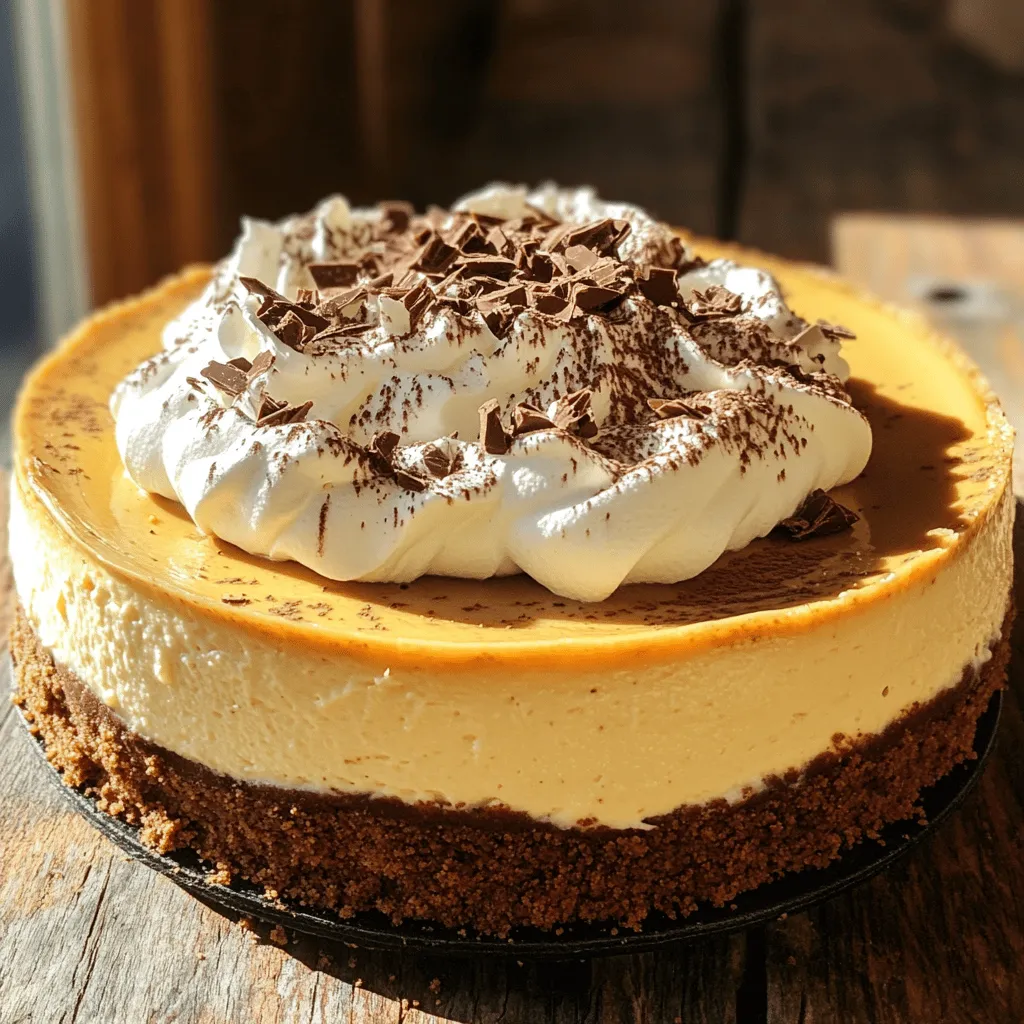 Pour the cream cheese mixture over the cooled crust in the springform pan. Bake for 50 to 60 minutes. The center should be set but still jiggle slightly. When ready, turn off the oven and crack the door open. Let the cheesecake cool in the oven for 1 hour. After that, cover it with plastic wrap and refrigerate for at least 4 hours. For the best flavor, leave it overnight. When you are ready to serve, whip the heavy cream until soft peaks form. Spread it over the cheesecake and garnish with cocoa powder or chocolate shavings. Enjoy this delicious espresso cheesecake! For more detailed steps, check the Full Recipe.