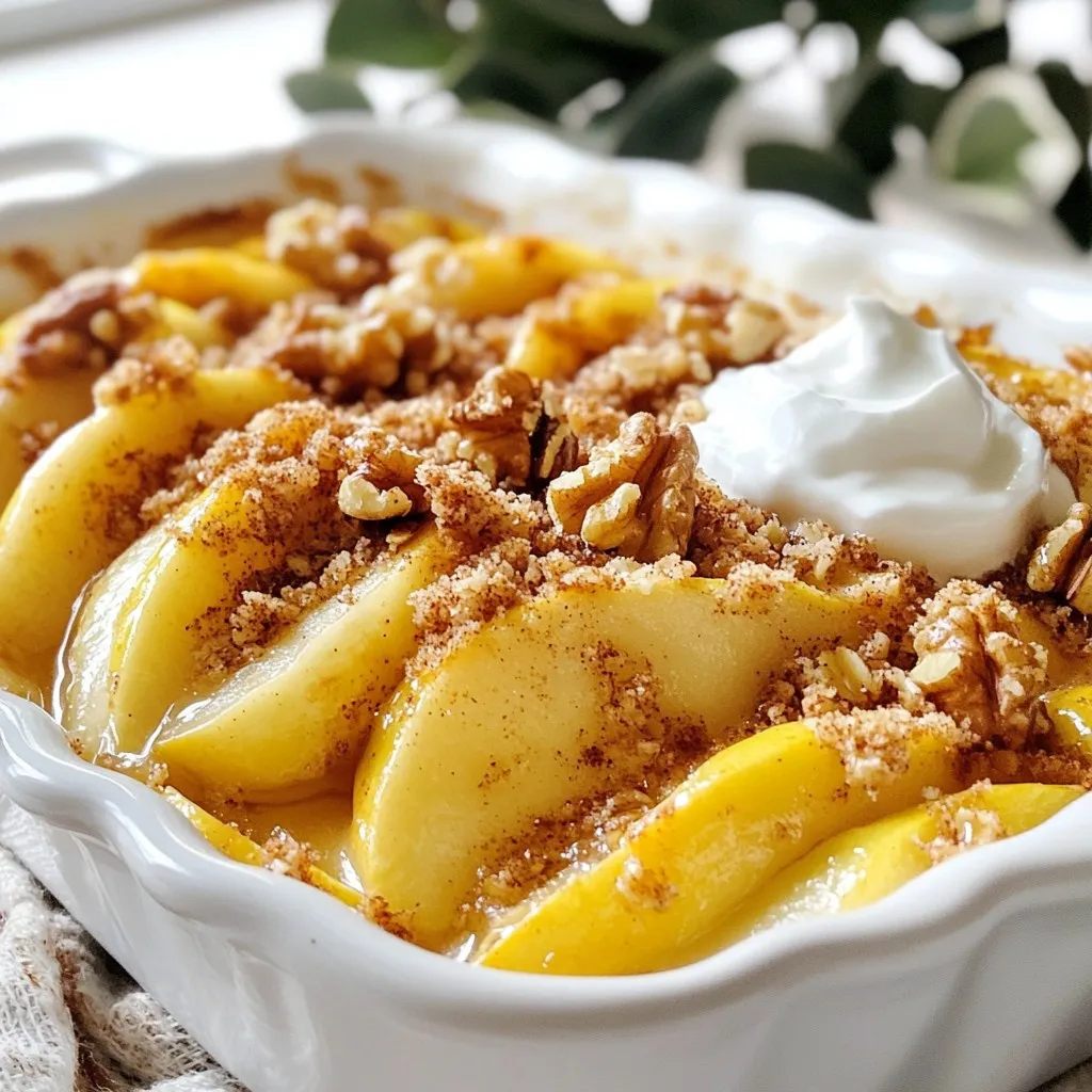 - 4 medium-sized apples, peeled, cored, and sliced - 1 cup rolled oats - 1 cup brown sugar - ½ cup all-purpose flour - 1 teaspoon ground cinnamon - ½ teaspoon nutmeg - ¼ teaspoon salt - ½ cup unsalted butter, melted - ½ cup chopped walnuts or pecans (optional) - 1 cup vanilla yogurt or whipped cream for serving (optional) You need fresh apples for this dish. I like using sweet apples. They add a nice flavor. - 9x13 inch baking dish - Large mixing bowl - Oven - Knife and cutting board - Measuring cups and spoons - Spoon or spatula These tools help you prepare the casserole easily. Having everything ready makes cooking more fun! - Chopped walnuts or pecans - Raisins or dried cranberries - A splash of vanilla extract These add-ins can give your casserole a unique twist. You can mix and match as you like. {{ingredient_image_1}} Start by preheating your oven to 350°F (175°C). This step is key for even baking. While the oven heats up, get your baking dish ready. Grease a 9x13 inch dish with a bit of butter or non-stick spray. Now, let’s prep the apples. Take four medium-sized apples and peel them. Next, core and slice the apples into thin pieces. In a large bowl, mix the sliced apples with ½ cup of brown sugar and 1 teaspoon of cinnamon. Toss the apples well, so they are nice and coated. Spread the apples evenly in the bottom of your greased baking dish. In the same bowl, it’s time to make the crumble topping. Add 1 cup of rolled oats, the remaining brown sugar, ½ cup of all-purpose flour, ½ teaspoon of nutmeg, and ¼ teaspoon of salt. Pour in ½ cup of melted unsalted butter. Mix everything until it becomes crumbly. If you like, stir in ½ cup of chopped walnuts or pecans for extra crunch. Take that delicious crumble mixture and sprinkle it evenly over the apples. Make sure the apples are completely covered. This topping will give your casserole a nice, crispy texture. Place the casserole in your preheated oven. Bake for 30-35 minutes. You’ll know it’s done when the apples are tender, and the top turns golden brown. Once baked, take it out of the oven and let it cool for a few minutes before serving. Enjoy it warm, on its own or with a scoop of vanilla yogurt or whipped cream if you like! Pick apples that are firm and tart. I love using Granny Smith apples. They add a nice zing. You can also mix in sweeter apples like Fuji or Honeycrisp. This blend makes the casserole tasty and well-rounded. Always peel and core your apples. This keeps the texture smooth and soft. The recipe calls for one cup of brown sugar, but you can adjust this. If you prefer less sweetness, cut back to ¾ cup. The apples bring their own natural sugar as they bake. If you want a sweeter taste, add a bit more brown sugar. Just taste as you go along! Spices can make your apple casserole shine. Use ground cinnamon and nutmeg for warmth. You can also add a pinch of allspice or ginger for a twist. Feel free to play with the amounts. A little can go a long way, so start small. You’ll find the perfect balance for your taste! Pro Tips Choose the Right Apples: Use a mix of tart and sweet apples like Granny Smith and Honeycrisp for a balanced flavor. Customize Your Toppings: Add dried fruits like raisins or cranberries for extra texture and flavor in the oat mixture. Let It Cool: Allow the casserole to cool for a few minutes before serving to help it set and enhance the flavors. Serve with a Twist: Try drizzling caramel sauce over the top for an indulgent touch when serving. {{image_2}} You can make this apple casserole gluten-free. Use gluten-free rolled oats instead of regular oats. Replace all-purpose flour with almond flour or a gluten-free flour blend. This keeps the texture nice while making it safe for those with gluten issues. To create a vegan version, swap out the butter for coconut oil or a vegan butter substitute. For the cream, use coconut yogurt or dairy-free whipped cream. These changes keep the dish tasty and plant-based. Want to mix it up? You can add other fruits like pears or berries. Dried fruits, such as raisins or cranberries, add a sweet touch. Just remember to reduce the sugar if you add sweet dried fruits. This gives your casserole extra flavor and texture. To store any leftover Easy Apple Casserole, let it cool down first. Then, place it in an airtight container. This keeps it fresh for up to three days in the fridge. If you have a lot left, you might want to divide it into smaller portions. Reheating is simple. Preheat your oven to 350°F (175°C). Place the casserole in an oven-safe dish. Cover it with foil to keep it from drying out. Heat for about 15-20 minutes. You can also use a microwave. Put a portion in a microwave-safe bowl and heat for one to two minutes. Stir halfway through for even warming. If you want to save some for later, freezing works well. First, let the casserole cool completely. Cut it into portions and wrap each piece tightly in plastic wrap. Then, place them in a freezer bag. This can last for about three months. When you’re ready to eat, thaw it overnight in the fridge, then reheat as mentioned above. Yes, you can use many kinds of apples. Granny Smith apples are tart and crisp. Honeycrisp apples are sweet and juicy. Fuji apples add a nice crunch. Using a mix of apples can give more flavor. Experiment with what you like best! You can add more healthy ingredients. Try using whole wheat flour instead of all-purpose flour. Add extra nuts for protein and healthy fats. You can also mix in some berries for added vitamins. Using less sugar helps too! This dish is great on its own. You can also serve it with vanilla yogurt. Whipped cream adds a sweet touch. Pair it with ice cream for a fun dessert. A scoop of cinnamon ice cream works wonders! It takes about 30 to 35 minutes to bake. You want the apples to be tender and the top golden brown. Keep an eye on it after 30 minutes. You can test it with a fork for doneness. This blog post covered how to make a simple apple 