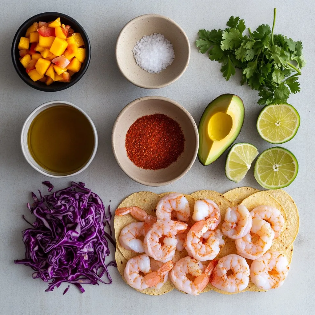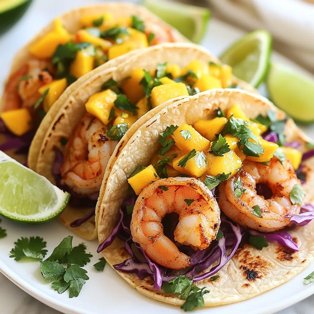 These tacos are best served right away. Place the cooked shrimp in warm tortillas. Top with cabbage, avocado, and mango salsa. Don’t forget the cilantro! Serve with lime wedges on the side. Squeeze lime over the tacos for extra zing. Enjoy your quick and tasty meal!