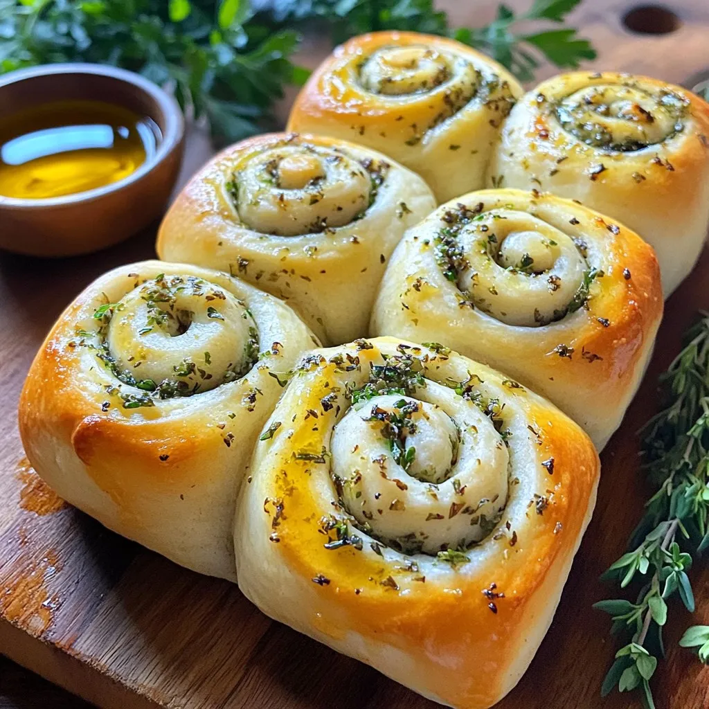 Serve your herb and garlic swirl rolls warm. Lay them on a rustic wooden board. You can garnish with fresh herbs like parsley or thyme. A small bowl of olive oil on the side is perfect for dipping. These rolls make a great side for soups or salads. Enjoy them at dinner or as a snack.