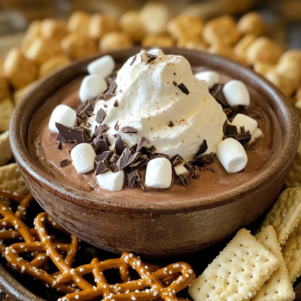 Presentation makes your dip even more fun. Serve it in a shallow bowl to showcase the toppings. Spread whipped cream on top for a fluffy look. Then sprinkle mini marshmallows and chocolate shavings for color. Arrange graham crackers, pretzels, or fruit around the bowl. This gives everyone options for dipping. Use small dessert forks or spoons to make it easy and cute.