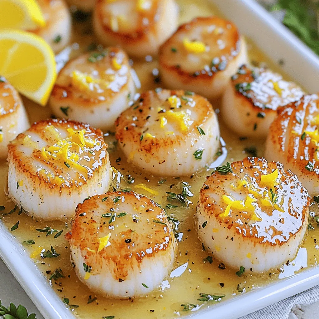 Serve your scallops on a white plate for a stunning look. Drizzle the lemon garlic butter sauce over the top for flavor and shine. Add lemon wedges and fresh thyme for a bright touch. You can pair them with a light salad or some crusty bread. This adds balance to your meal and makes it even more enjoyable.
