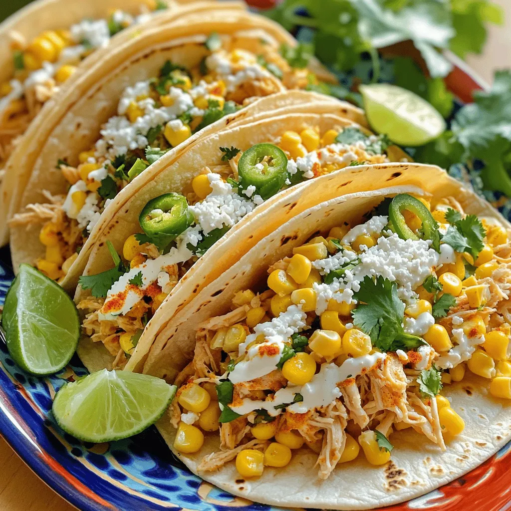 Prep your taco components ahead of time. Cook the chicken and grill the corn the day before. Store them in the fridge until you are ready to assemble. You can also mix the sauce ahead of time. This saves you a lot of time during meal prep. When it’s time to eat, just warm the chicken and corn. Then, put everything together quickly. It makes dinner stress-free and fun!