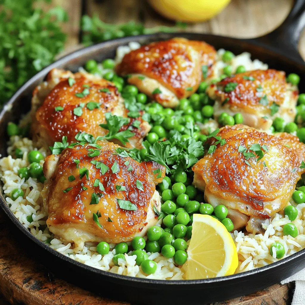 After the rice is cooked, stir in 1 cup of frozen peas. Also, add the zest and juice of 1 lemon. Cook for an additional 3 minutes until the peas are heated through. Remove the skillet from heat. Garnish with chopped parsley for a fresh touch. Serve directly from the skillet for a rustic look. Enjoy your flavorful Minute Garlic Butter Chicken & Rice Skillet!