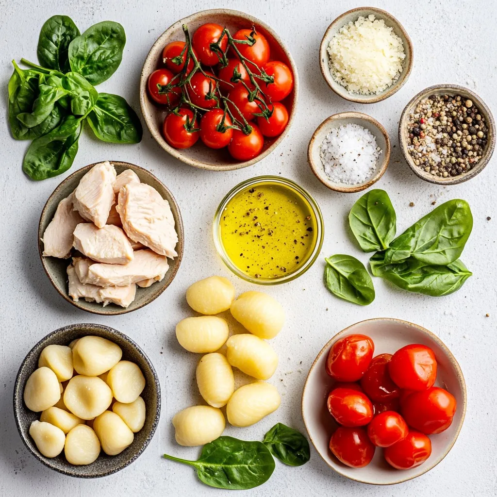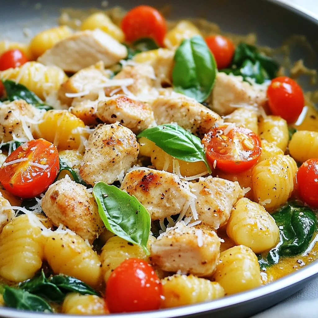 A quick and flavorful skillet dish featuring chicken, gnocchi, and fresh vegetables.