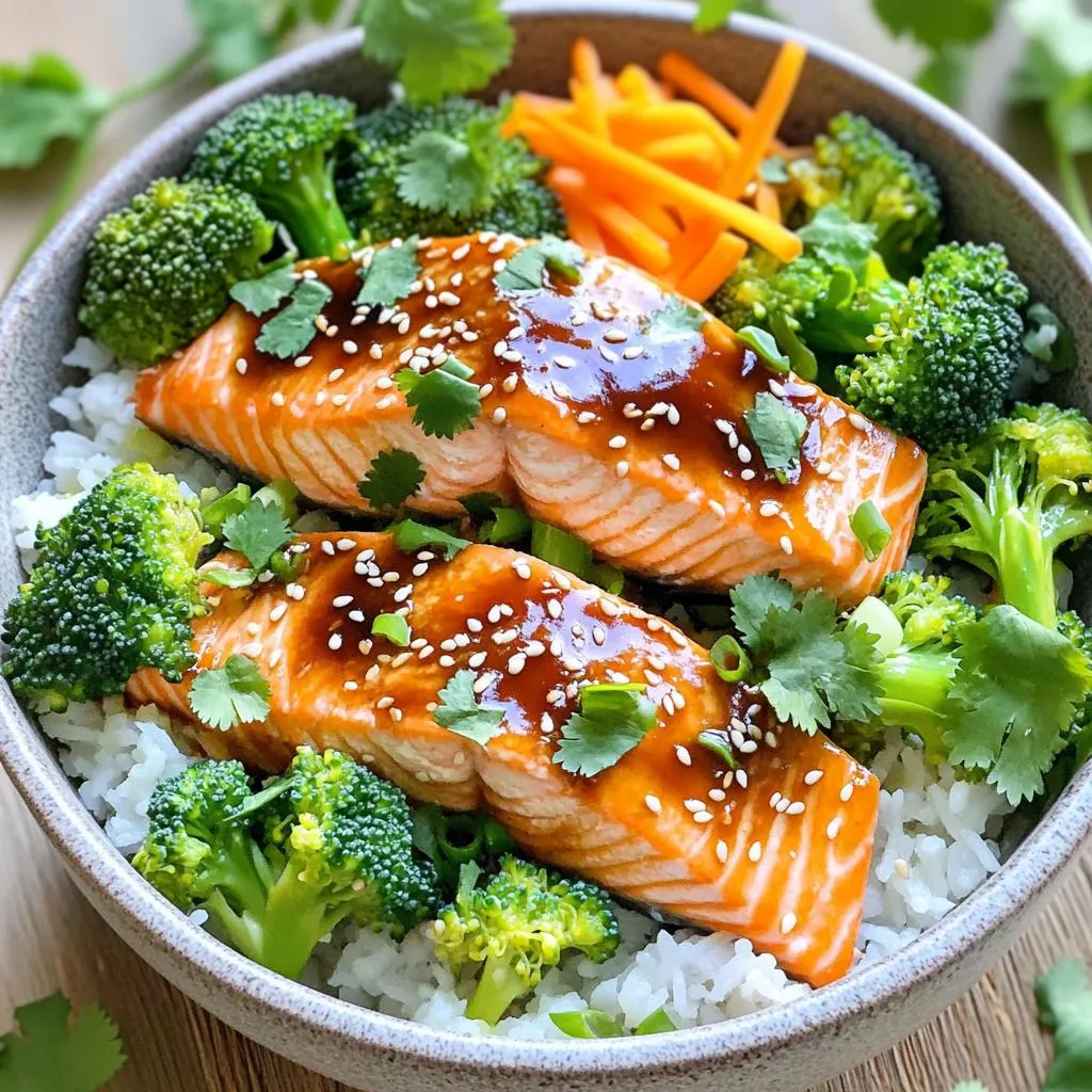 Enjoy a delightful meal with these Teriyaki Bliss Salmon Rice Bowls! This easy recipe features tender salmon fillets glazed in a savory teriyaki sauce, served over fluffy jasmine rice and colorful veggies like steamed broccoli and julienned carrots. Perfect for a quick weeknight dinner, this dish is not only tasty but also packed with nutrients. Click through now to explore the full recipe and make these delicious bowls at home!