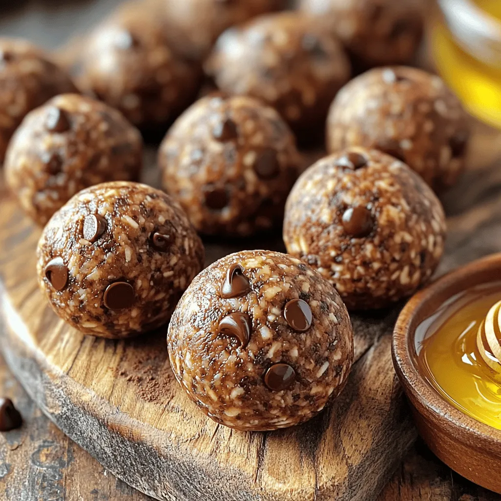 - 1 cup rolled oats - 1/2 cup almond butter or peanut butter - 1/4 cup honey or maple syrup - 1/4 cup cocoa powder - 1 tablespoon instant coffee granules - 1/2 teaspoon vanilla extract - 1/2 cup mini chocolate chips - A pinch of salt Each ingredient plays a key role in making these energy balls both tasty and nutritious. Rolled oats form the base and give texture. Almond butter or peanut butter adds creaminess and protein. Honey or maple syrup provides sweetness and binds everything together. Cocoa powder gives that rich chocolate flavor. Instant coffee granules add a kick of mocha taste. Vanilla extract enhances the overall flavor. Mini chocolate chips bring sweetness and a fun crunch. A pinch of salt balances all the flavors. - Additional nuts or seeds - Flavored protein powder - Dried fruits You can easily customize your energy balls with optional ingredients. Adding nuts or seeds gives extra crunch and nutrition. Flavored protein powder can boost protein levels for a post-workout snack. Dried fruits add sweetness and chewiness, making each bite a treat. Don't be afraid to mix and match based on your taste! - Mixing dry ingredients Start with a large mixing bowl. Add 1 cup of rolled oats, 1/4 cup of cocoa powder, 1 tablespoon of instant coffee granules, and a pinch of salt. Stir well to blend the dry ingredients. This helps each bite pack a flavor punch. - Adding wet ingredients Next, add 1/2 cup of almond butter (or peanut butter) and 1/4 cup of honey (or maple syrup). Drizzle in 1/2 teaspoon of vanilla extract. Mix everything with a spatula or your hands. You want it sticky, so if it's too dry, add a splash of water or more honey. - Forming the dough After mixing, you should have a thick dough. Fold in 1/2 cup of mini chocolate chips. Make sure they are spread throughout the dough for even sweetness. - Size and consistency Take small portions of the dough, about 1 inch in diameter. Roll them into balls using your hands. The size should be uniform for even chilling. - Placement on baking sheet Place the rolled balls on a baking sheet lined with parchment paper. This prevents sticking and makes for easy cleanup. - Refrigeration time Once all the balls are shaped, refrigerate them for at least 30 minutes. This helps them firm up and makes them easier to eat. - Final texture check After chilling, check the texture. They should be firm yet chewy. If they hold their shape, they are ready to enjoy! To make the best mocha chocolate chip energy balls, focus on dough texture. You want a thick, sticky dough that holds together. If it feels too dry, add a splash of water or more honey. Too wet? Sprinkle in more oats until it thickens. This balance helps the balls form well. Next, think about sweetness. Honey gives a rich taste, but maple syrup offers a lighter flavor. Taste the mixture before rolling it into balls. Adjust the sweetness if needed. A little extra honey can go a long way! These energy balls pair well with drinks. Try them with coffee or tea for a quick boost. They also go great with smoothies. Blend a banana and some spinach for a healthy shake. For extra nutrition, add nuts or seeds. A sprinkle of chia seeds or hemp seeds can add protein. You can also enjoy them with yogurt. Just break a ball into your yogurt for a tasty treat! One big mistake is not refrigerating the energy balls long enough. If you skip this step, they may fall apart. Chill them for at least 30 minutes. This helps them firm up nicely. Another mistake is mixing too much or too little. Overmixing can make them tough. Undermixing leaves dry spots. Mix until just combined, and then fold in the chocolate chips gently to keep them soft. {{image_2}} You can change the coffee type in these energy balls. Try espresso for a stronger taste. A light roast gives a milder flavor. You can also add spices like cinnamon or nutmeg. These spices add warmth and depth. Just a pinch goes a long way. If you want a different nut butter, try cashew or sunflower butter. Each nut brings its unique taste. For sweeteners, maple syrup or agave syrup work well too. They add sweetness without being too heavy. For vegan energy balls, use maple syrup and a nut butter. This keeps the recipe plant-based. If you need gluten-free options, use certified gluten-free oats. They make this snack safe for everyone. To keep your mocha chocolate chip energy balls fresh, use an airtight container. This helps maintain their taste and texture. Glass or plastic containers work well. Make sure the lid seals tightly. Store the container in the fridge for best results. This keeps the balls firm and easy to grab. Freezing energy balls is a great way to save them for later. To freeze, first place them in a single layer on a baking sheet. Freeze for about an hour until they are solid. After that, transfer them into a freezer-safe bag or container. This prevents them from sticking together. When you want to eat one, take it out and thaw it in the fridge for a few hours. You can also thaw it at room temperature for about 30 minutes. These energy balls can last in the fridge for about one week. Keep an eye on them for any signs of spoilage. If they smell off or have a strange texture, it’s best to toss them. Always trust your senses when checking for freshness. Enjoy your tasty snack while it’s at its best! Mocha chocolate chip energy balls last about one week in the fridge. Store them in an airtight container to keep them fresh. The cool temperature helps maintain their taste and texture. If you want them to last longer, you can freeze them. They will stay good for up to three months in the freezer. Yes, you can swap cocoa powder for chocolate protein powder. This change will add extra protein to your energy balls. Keep in mind that protein powder can change the taste a bit. You may need to adjust the sweetness as well, depending on the brand you use. Absolutely! Mocha chocolate chip energy balls are great for kids. They are tasty, easy to eat, and packed with goo