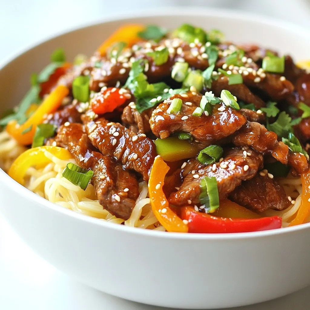 Serve your Mongolian Beef Noodles in large, deep bowls. This makes the dish look inviting. For an appealing touch, garnish with extra green onions and a sprinkle of sesame seeds. These add nice texture and color.