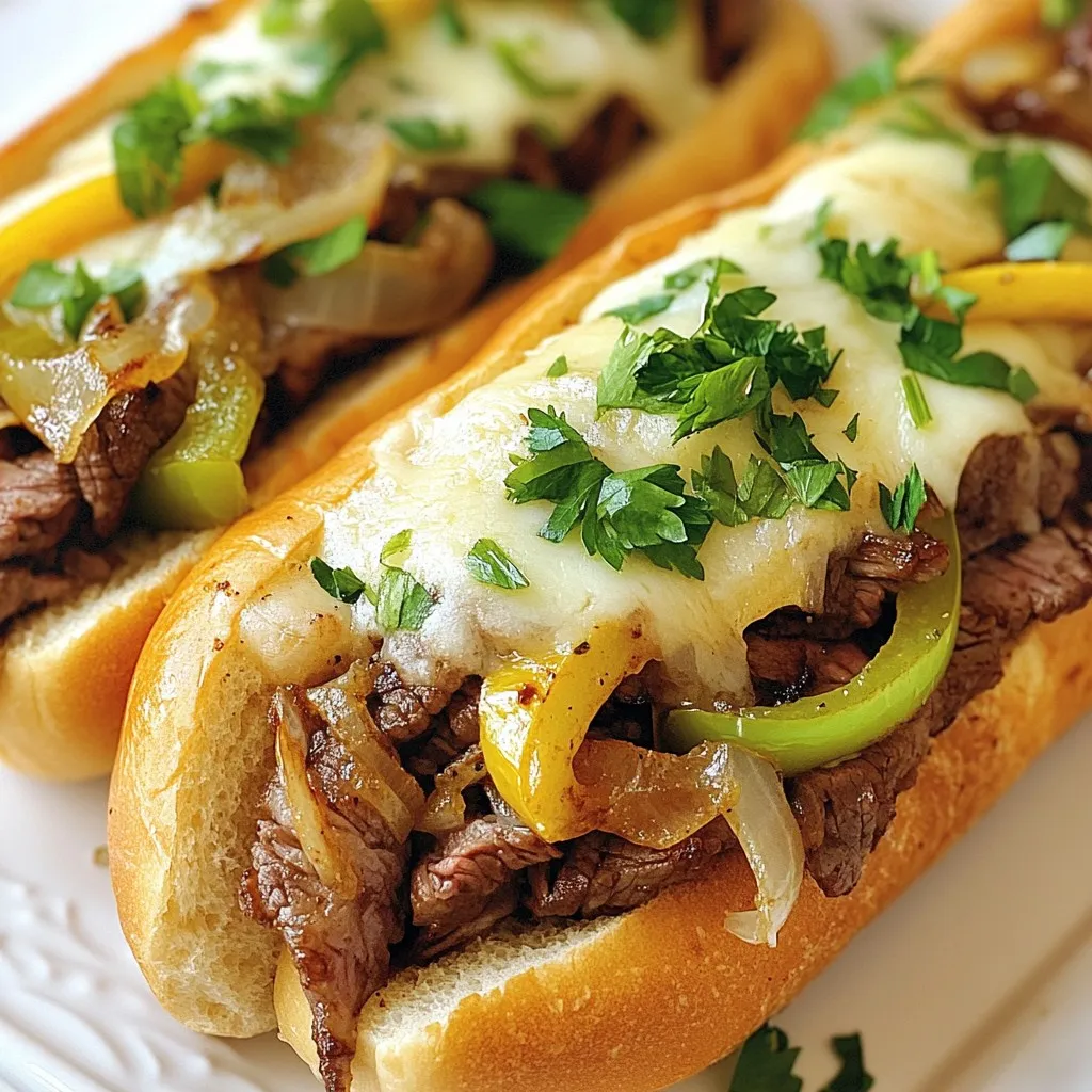 Sprinkle chopped fresh parsley on top for garnish. Serve hot and enjoy your gourmet Philly cheesesteak!