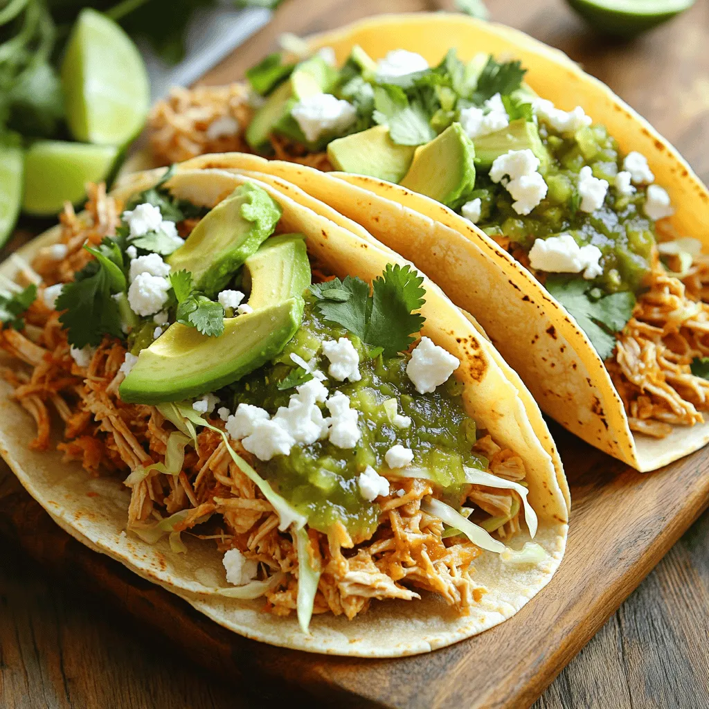 This blog post covered everything you need for making delicious pulled chicken tacos. We explored main ingredients, like chicken, salsa verde, and tasty toppings. I shared cooking methods for a slow cooker and an Instant Pot. You learned tips to perfect your chicken and explored fun variations for all diets. Store leftovers wisely to keep them tasty. With these insights, you can enjoy flavorful tacos that impress friends and family. Remember, the right toppings and personal touches make each taco unique and special. Happy cooking!