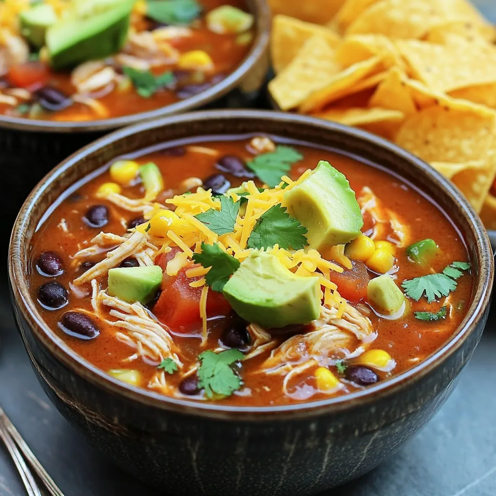 Finally, toppings make a big difference. Fresh cilantro brightens the soup. Diced avocado adds creaminess. Shredded cheese gives a rich finish. I love to serve it with crunchy tortilla chips. Each bite is a burst of flavor!