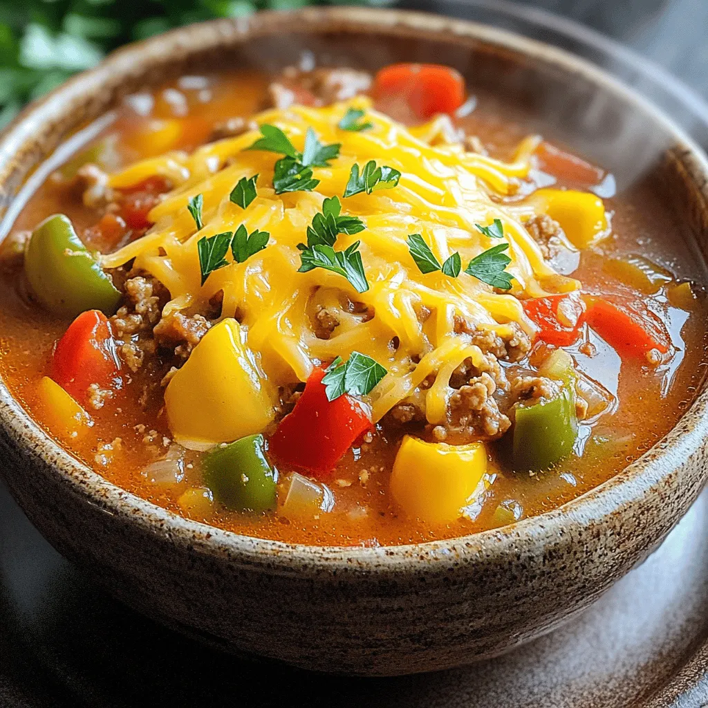 The main ingredients bring life to the soup. Bell peppers add color and sweetness. Ground turkey or beef gives it heartiness. Onion and garlic add depth and warmth. Diced tomatoes provide acidity and balance. Broth makes the soup rich and comforting. Quinoa or rice offers a nice texture for every spoonful.