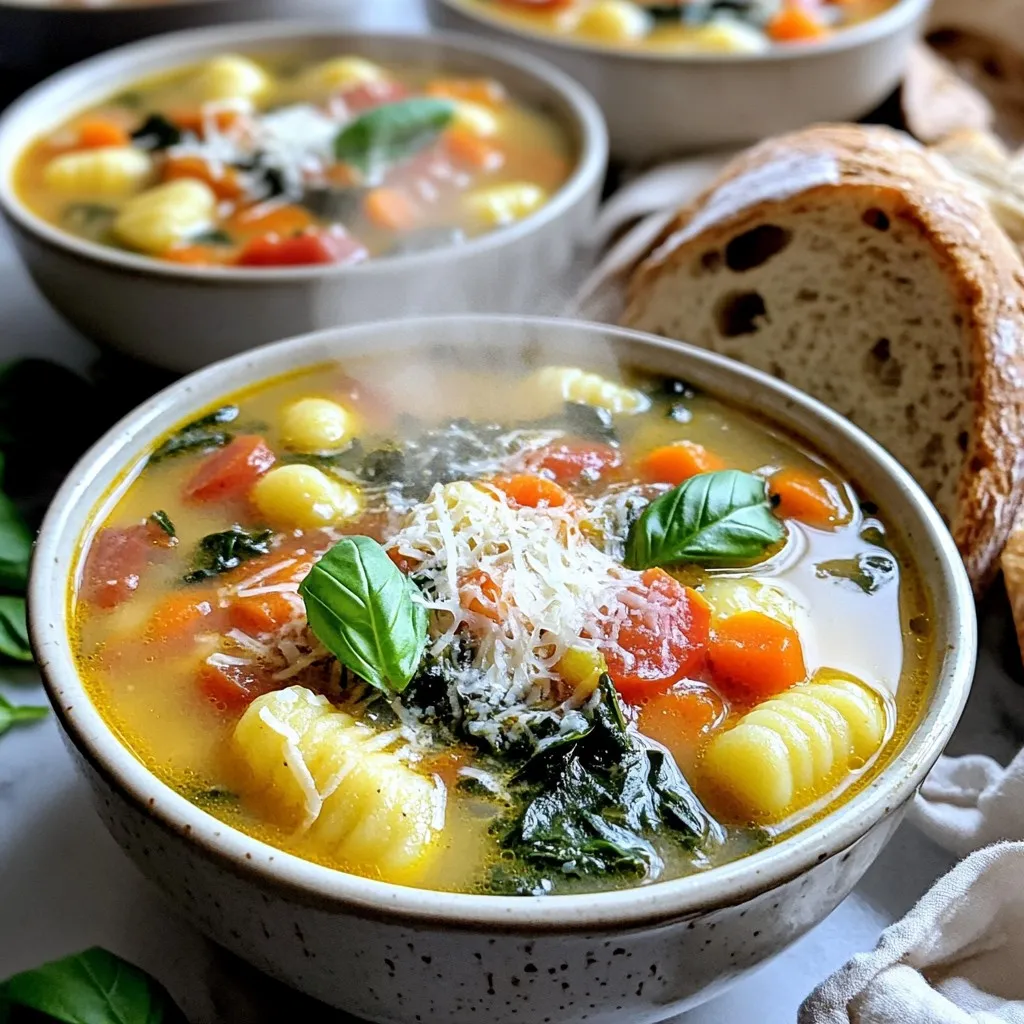 This soup is full of flavor and easy to make. Here are the main ingredients you'll need: - 1 lb (450g) potato gnocchi - 4 cups vegetable broth - 1 can (15 oz) diced tomatoes, undrained - 2 cups fresh spinach, chopped - 1 cup carrots, diced - 1 cup kale, chopped (or other leafy greens) - 1 medium onion, diced - 3 cloves garlic, minced - 1 teaspoon dried basil - 1 teaspoon dried oregano - ½ teaspoon red pepper flakes (optional) - Salt and pepper to taste - ½ cup heavy cream (or coconut milk for a dairy-free option) - Grated Parmesan cheese for serving (optional) These ingredients blend well together. The gnocchi adds heartiness. The spinach and kale give it color and nutrition. The tomatoes add a hint of sweetness. You can switch things up in this soup. Here are some ideas: - Add other vegetables like zucchini or bell peppers for more flavor. - Use different greens, like Swiss chard or collard greens. - For a spicy kick, increase the red pepper flakes. - Swap heavy cream for coconut milk for a lighter soup. - Top with fresh herbs like basil or parsley for extra freshness. These options let you make the soup your own. Feel free to mix and match based on what you have at home. Choosing fresh produce makes a big difference. Here’s how to pick the best: - For spinach and kale, look for bright green leaves without brown spots. - Choose carrots that are firm and smooth. Avoid ones that are limp or cracked. - Select tomatoes that feel heavy and have a rich color. - Check onions for dry, papery skin and a heavy feel. Fresh ingredients boost the flavor and nutrition of your soup. Always aim for quality when you shop. Start by chopping the onion, garlic, carrots, and kale. Place them in your slow cooker. Add the canned tomatoes without draining them. This gives the soup extra flavor. Pour in the vegetable broth. It's the base of our soup. Then, add the dried basil, oregano, and optional red pepper flakes. Don't forget to season with salt and pepper. Stir everything well to mix the flavors. Cover the slow cooker with the lid. Set it to low for 6-7 hours or high for 3-4 hours. Cooking on low lets the flavors blend nicely. If you're short on time, the high setting works well too. Just make sure to check the soup toward the end. This way, you can ensure the vegetables are tender. About 30 minutes before serving, stir in the potato gnocchi and chopped spinach. The gnocchi will float when they are ready. This shows they are cooked through. After the gnocchi are done, mix in the heavy cream. Let it cook for an extra 10 minutes. This will make your soup rich and creamy. Taste the soup and adjust the seasoning if needed. To make your Slow Cooker Tuscan Gnocchi Soup pop with flavor, focus on fresh herbs. Fresh basil adds a bright taste. Try adding it at the end for the best flavor. Also, use a good vegetable broth. A rich broth adds depth to the soup. If you like heat, add more red pepper flakes. They boost the soup’s warmth. You can also mix in a splash of lemon juice. This adds a nice zing to the creamy soup. One common mistake is adding the gnocchi too early. They should go in about 30 minutes before serving. If you add them too soon, they may get mushy. Also, don’t skip the heavy cream. It brings a rich texture to the soup. Another mistake is not seasoning enough. Taste your soup before serving. Adjust salt and pepper to make it just right. Serve your soup hot in deep bowls. Add a sprinkle of grated Parmesan cheese on top. It adds a savory touch. You can also garnish with fresh basil or parsley. This gives a pop of color. For a complete meal, pair it with crusty bread. The bread is perfect for dipping. You can even serve a simple salad on the side. A light salad balances the rich soup. Enjoy your meal with a warm drink to make it cozy! {{image_2}} You can easily make this soup gluten-free. Just use gluten-free gnocchi. Many stores sell it now. For a dairy-free twist, swap heavy cream with coconut milk. The coconut milk adds a nice creaminess without any dairy. Feel free to mix up the veggies! You can add zucchini, bell peppers, or even mushrooms. If you want a sweeter taste, try adding sweet potatoes. The soup remains tasty and colorful with any veggie you choose. Need some extra protein? Add cooked chicken, turkey, or sausage. You could also use white beans. They add protein and make the soup filling. Just stir them in about 30 minutes before serving. Each option boosts the flavor and makes your meal more satisfying. To store leftover Slow Cooker Tuscan Gnocchi Soup, let it cool first. Pour the soup into an airtight container. Make sure to leave some space at the top. This helps avoid spills when freezing. Label the container with the date. Store it in the fridge if you plan to eat it soon. For longer storage, put it in the freezer. You can freeze this soup for up to three months. When you're ready to eat, thaw it in the fridge overnight. Once thawed, heat the soup on the stove over low heat. Stir it gently to warm it evenly. If the soup seems thick, add a splash of broth or water. This will help bring back its creamy texture. To keep your soup fresh, use high-quality ingredients. Fresh greens like spinach and kale taste best. If you add cream, use it right before serving. Cream can curdle if frozen. For the best flavor, consume the soup within a week when stored in the fridge. Remember to taste and adjust the seasonings after reheating. Yes, you can use frozen gnocchi. Just add them to the soup about 30 minutes before serving. They will cook perfectly in the hot broth. Frozen gnocchi saves time and gives great results. The soup lasts about 3 to 4 days in the fridge. Make sure to store it in an airtight container. If you want it to last longer, freeze it instead. I love serving this soup with crusty bread. You can also pair it with a simple salad. A sprinkle of grated Parmesan on top adds a nice touch. Enjoy it as a cozy meal! This blog post covered how to make slow cooker Tuscan gnocchi soup. Yo