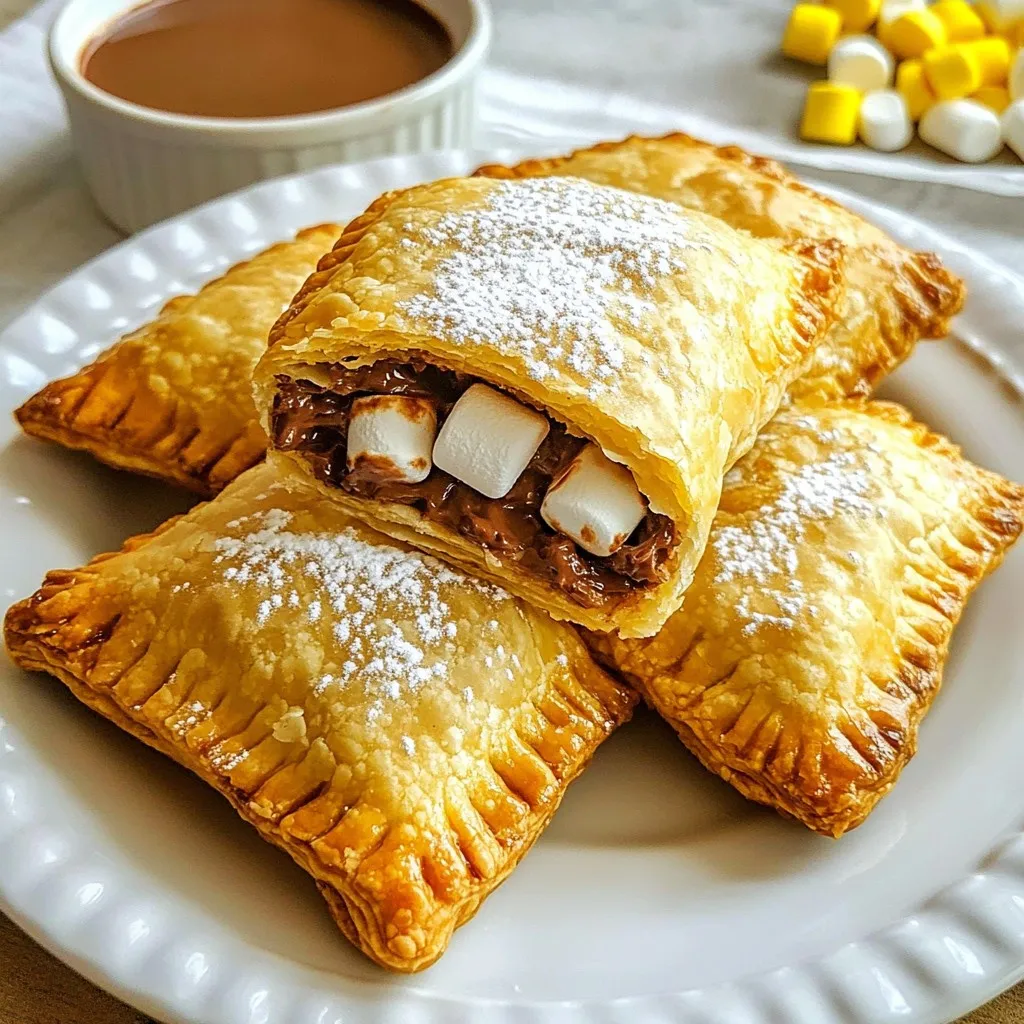 Delicious hand pies filled with chocolate, marshmallows, and graham crackers, perfect for a sweet treat.