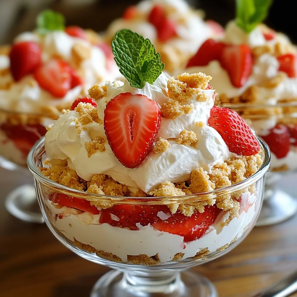 To assemble, layer the fluff mixture with crushed graham crackers in a large serving bowl or individual cups. Start with a layer of graham crackers, followed by a layer of the strawberry fluff, and repeat as necessary.