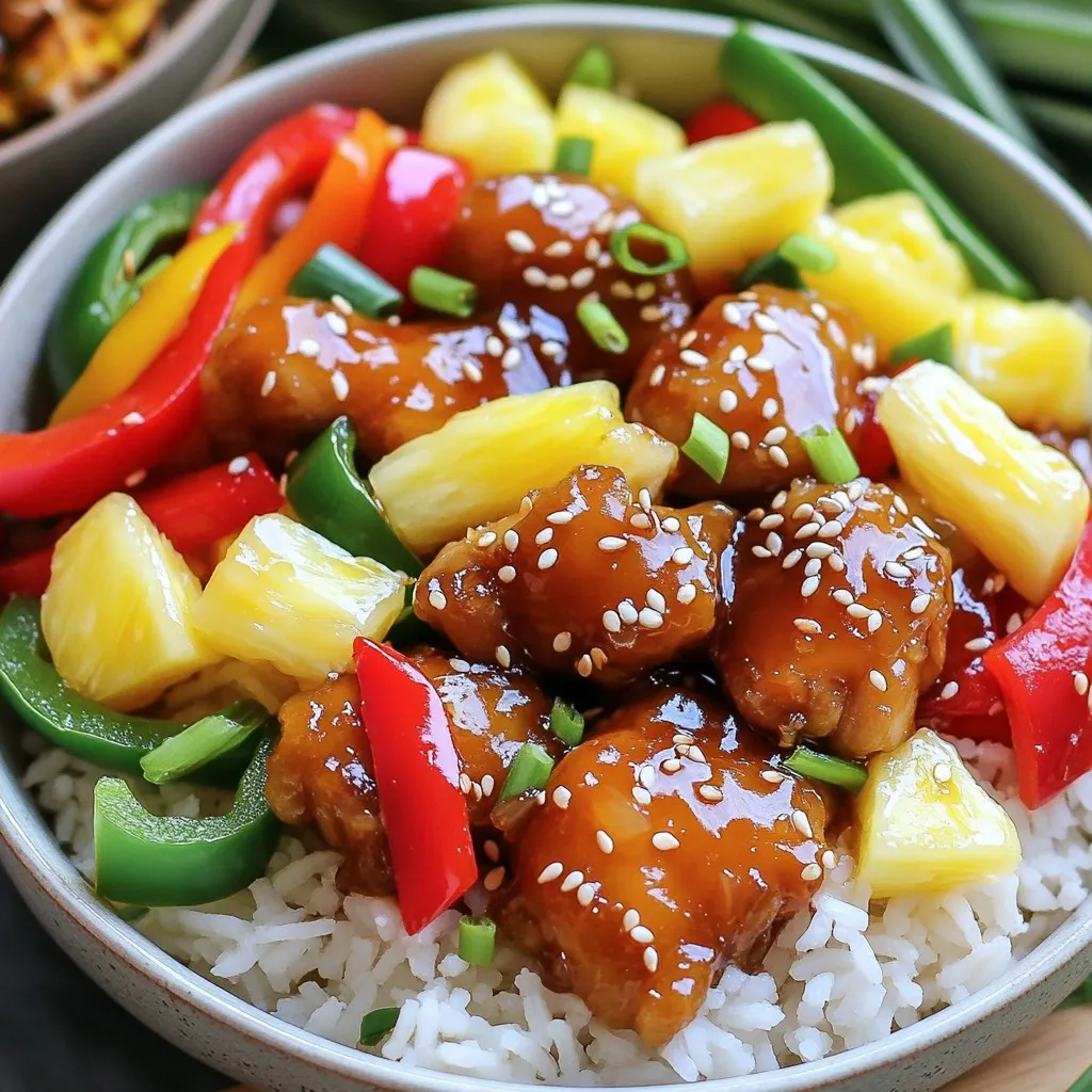 I love using chicken thighs for this dish because they stay juicy. The bell peppers add color and crunch. Pineapple chunks bring a sweet burst of flavor. For the sauce, I mix soy sauce, apple cider vinegar, honey, and cornstarch. This blend gives the bowl that classic sweet and sour taste.