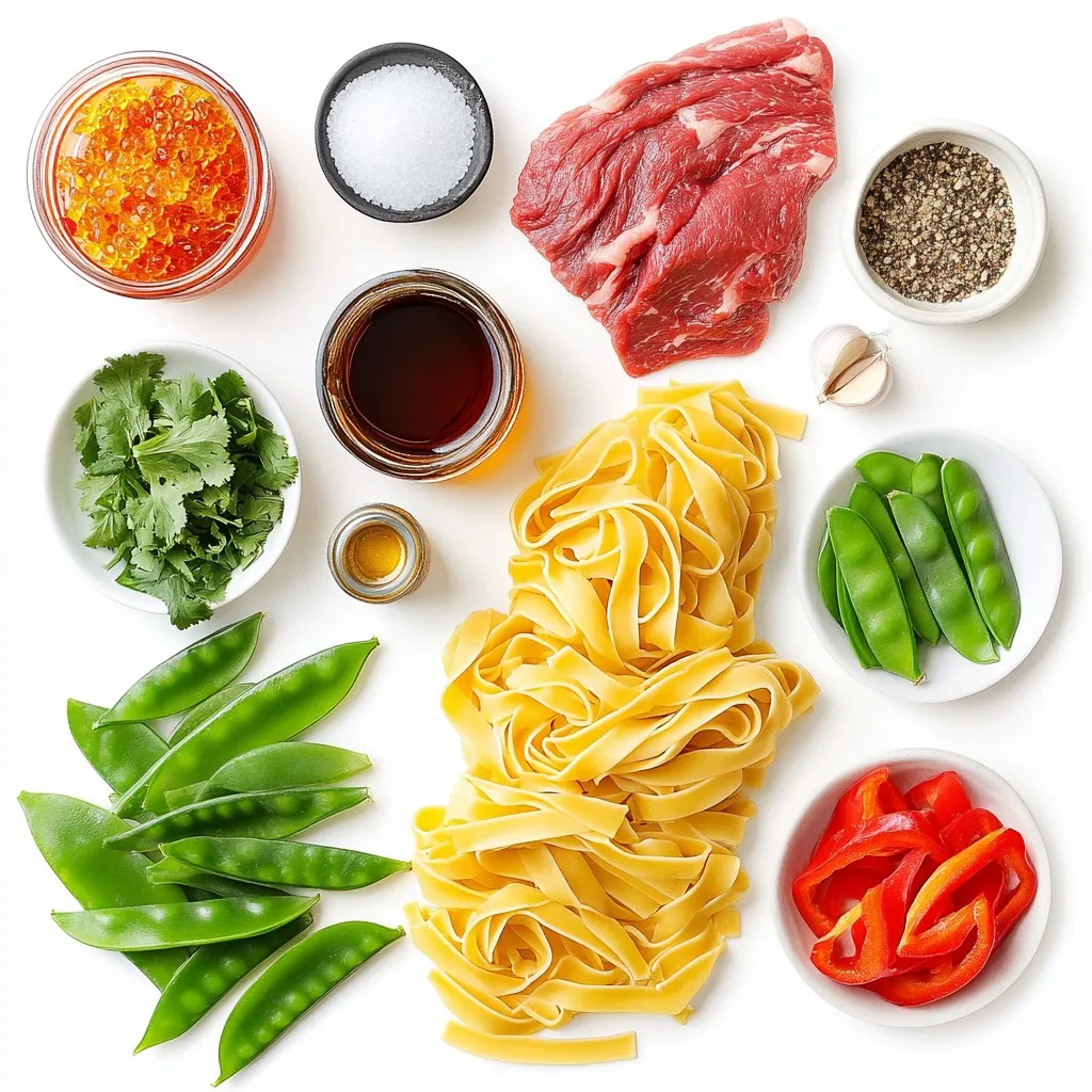 For this dish, the main ingredients play a vital role. The fettuccine pasta serves as the base, giving you a hearty and comforting texture. Flank steak is perfect here because it cooks quickly and absorbs flavors well. The sauce components, like soy sauce, honey, and sriracha, create a sweet and spicy kick. Garlic powder and ground ginger add depth to the flavor.