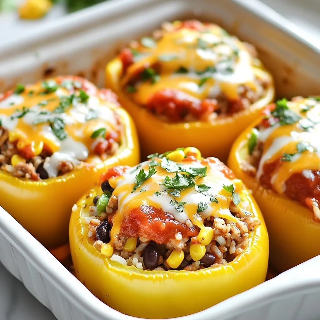 These ingredients come together to create a meal that is tasty and filling. The bell peppers add sweetness and crunch. The ground turkey or beef gives protein, while the beans and corn add fiber and flavor. Taco seasoning brings that classic taste we all love. The cheese melts into a creamy topping that makes each bite delightful. You can switch up the cheese to suit your taste.