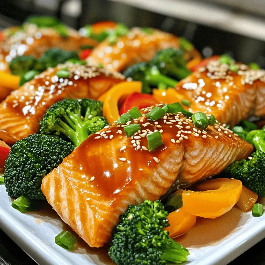 The teriyaki sauce is what makes this dish shine. I mix soy sauce with honey or maple syrup for sweetness. Rice vinegar adds a nice tang, while garlic and ginger give the sauce depth. Together, they create a rich flavor that coats the salmon and veggies perfectly.
