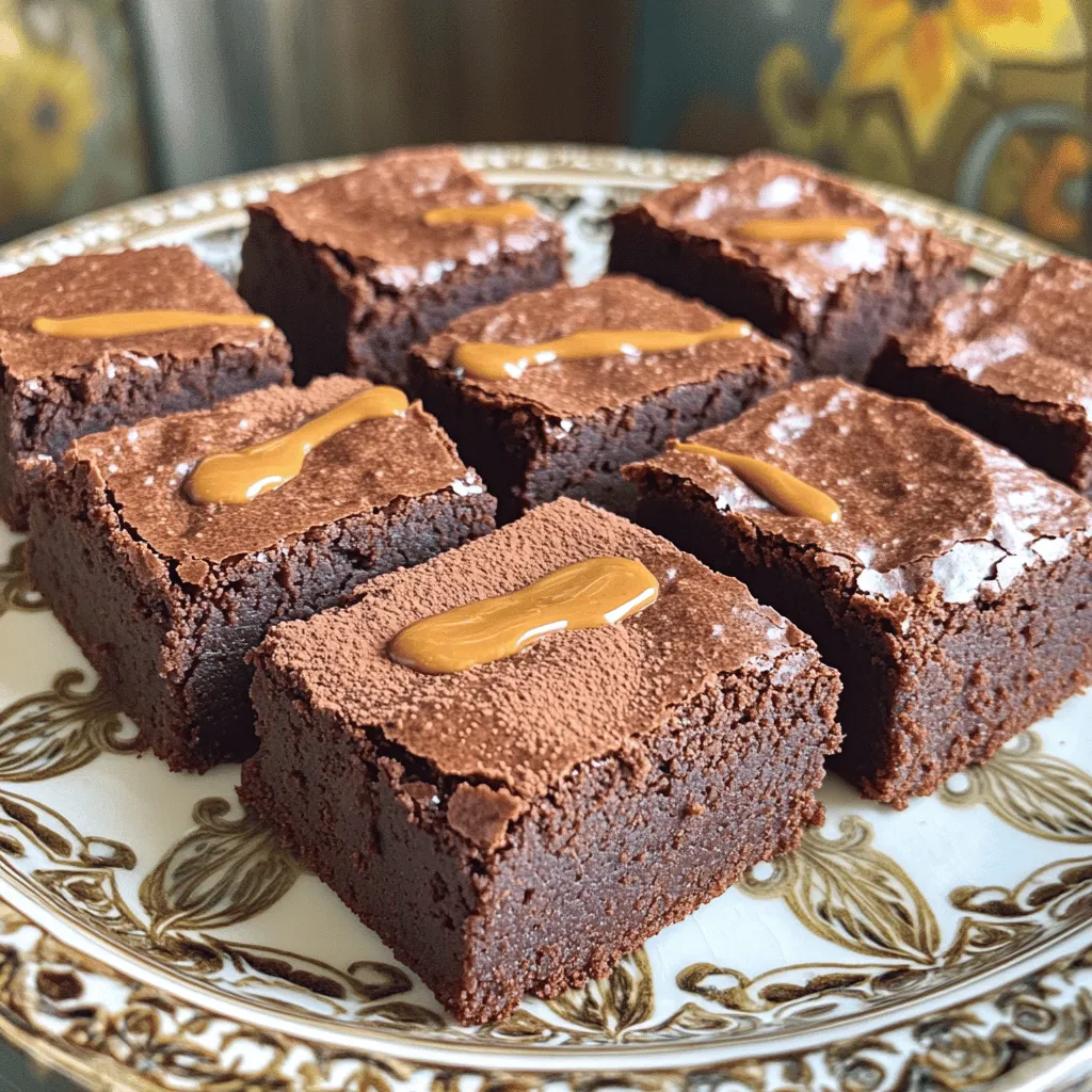 To freeze, slice the brownies into squares before wrapping. Place parchment paper between each square for easy access later. To reheat, simply take a square out and let it sit at room temperature for a few minutes. You can warm it in the microwave for about 15 seconds if you like it warm. Enjoy your rich and decadent treat!