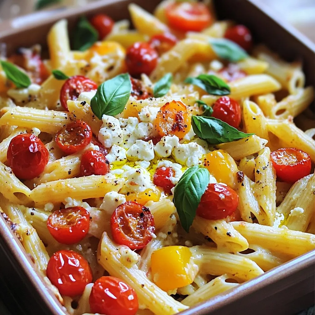 Gather these simple ingredients. They are easy to find at any grocery store. The pasta brings a great base to the dish. Feta cheese adds creaminess and flavor. Cherry tomatoes burst with sweetness as they bake. The red bell pepper adds a nice crunch. Onion and garlic give a strong base flavor. Oregano provides a touch of the Mediterranean. Chili flakes, if you like spice, add a nice kick. Olive oil helps everything blend well together. Don’t forget salt and pepper for taste. Fresh basil leaves brighten the dish. Grated Parmesan, optional, gives a rich finish. You will love how these ingredients work together!
